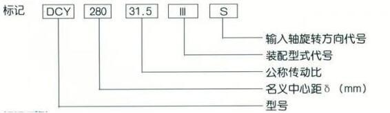 名义中心距为280mm,公称传动比为31.5,装配型式第Ⅲ种,输入轴顺时针方向旋转的三种传动减速器标记为DCY280-31.5-ⅢS。